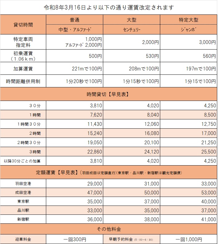 さて、誠に心苦しいお知らせではございますが、この度全国的なタクシー運賃・料金の改定が行われ、弊社におきましても、価格改定を実施させていただくこととなりました。